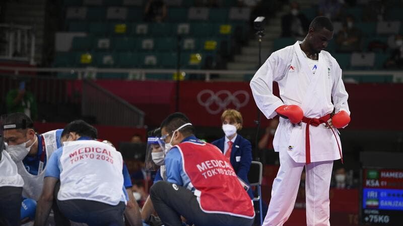 وحصل السعودي طارق حامدي على الميدالية الفضية في وزن فوق 75 كيلوغراماً في الكاراتيه بأولمبياد طوكيو اليوم، بعد قرار الحكام باستبعاده من النهائي ضد الإيراني سجاد قنجزادة طارق حامدي. أسقط لاعب الكاراتيه السعودي، طارق حامدي، منافسه الإيراني، سجاد كنجزاده، بركلة في الوجه، كلفته الميدالية الذهبية في دورة الألعاب الأولمبية طوكيو 2020.